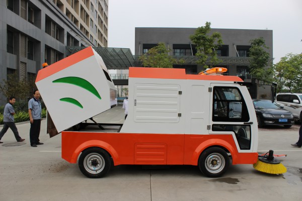 核昌公司在2014年與咸陽市公路局合作研發(fā)生產(chǎn)的第一代電動清掃車,于2015年6月將15臺電動清掃車成功交付。以此為契機,在第一代的基礎(chǔ)上進行技術(shù)改進,提高了機械零部件加工精度,車輛行駛更加平穩(wěn),上料機構(gòu)結(jié)構(gòu)簡化并增加防塵,減小了工作噪音,電機的可靠性得到改進,大大減少了非作業(yè)時段對機器必要的磨損,極大延長機器使用壽命。第二代電動清掃車于2015年8月23日成功誕生,經(jīng)廠內(nèi)測試基本功能運行正常,8月24日2臺電動清掃車在中陜核工業(yè)集團公司進行現(xiàn)場演示,使用效果良好。