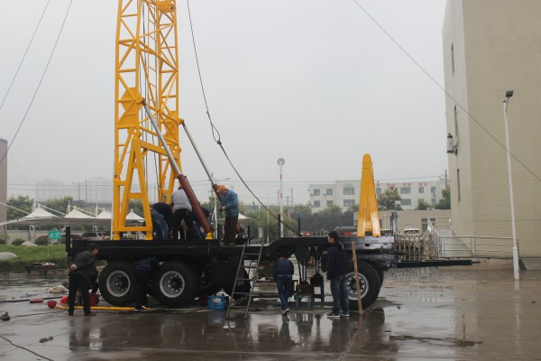 2018年9月25日到26日,核工業(yè)208大隊(duì)鉆探公司經(jīng)理褚忠鐸和安防處干事谷峰來我公司驗(yàn)收5臺(tái)HXY-800QT拖車鉆機(jī),并對(duì)塔體強(qiáng)度進(jìn)行拉力實(shí)驗(yàn)測(cè)試。首先根據(jù)雙方簽訂的技術(shù)協(xié)議,對(duì)5臺(tái)HXY-...