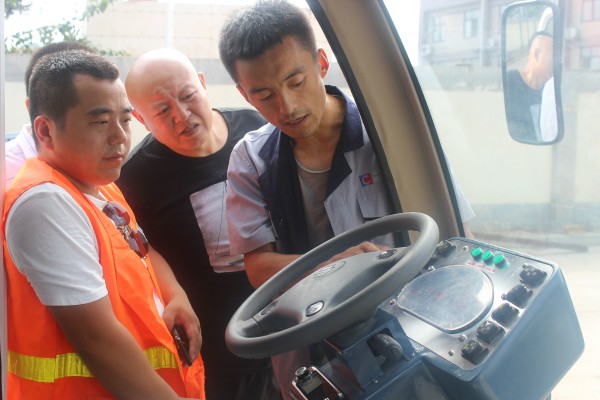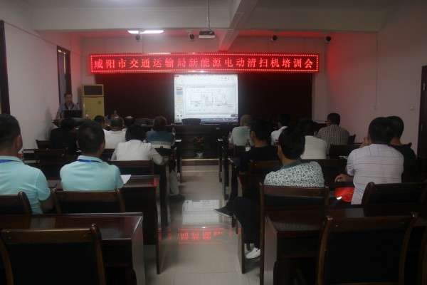 交付儀式舉行完后,核昌公司專業(yè)技術人員為咸陽市交通運輸局工作人員介紹了電動清掃機的車體結構和操作面板,使工作人員對清掃機有了簡單的了解。之后,在公司大會議室召開新能源清掃機培訓會,為操作人員詳細講解了清掃機的主要參數(shù)、操作方法和應注意的問題,并在會后進行實地操作演示,解答操作人員的疑問,使操作人員更加快速、安全的熟悉操作方法。